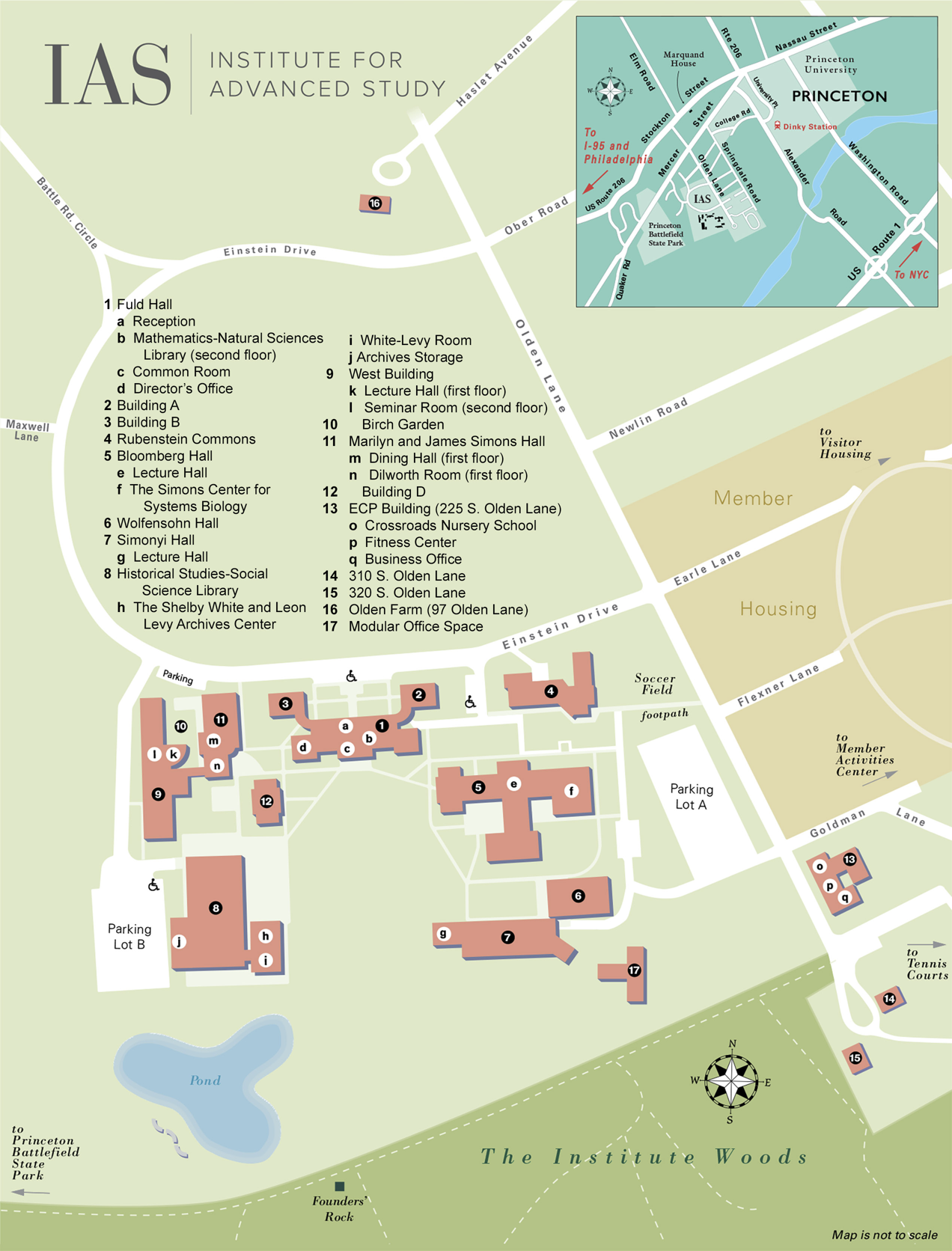 Accommodation will be provided at the IAS. The lectures will be held in room RC5 of Rubenstein Commons (marked as #4 on the map below).